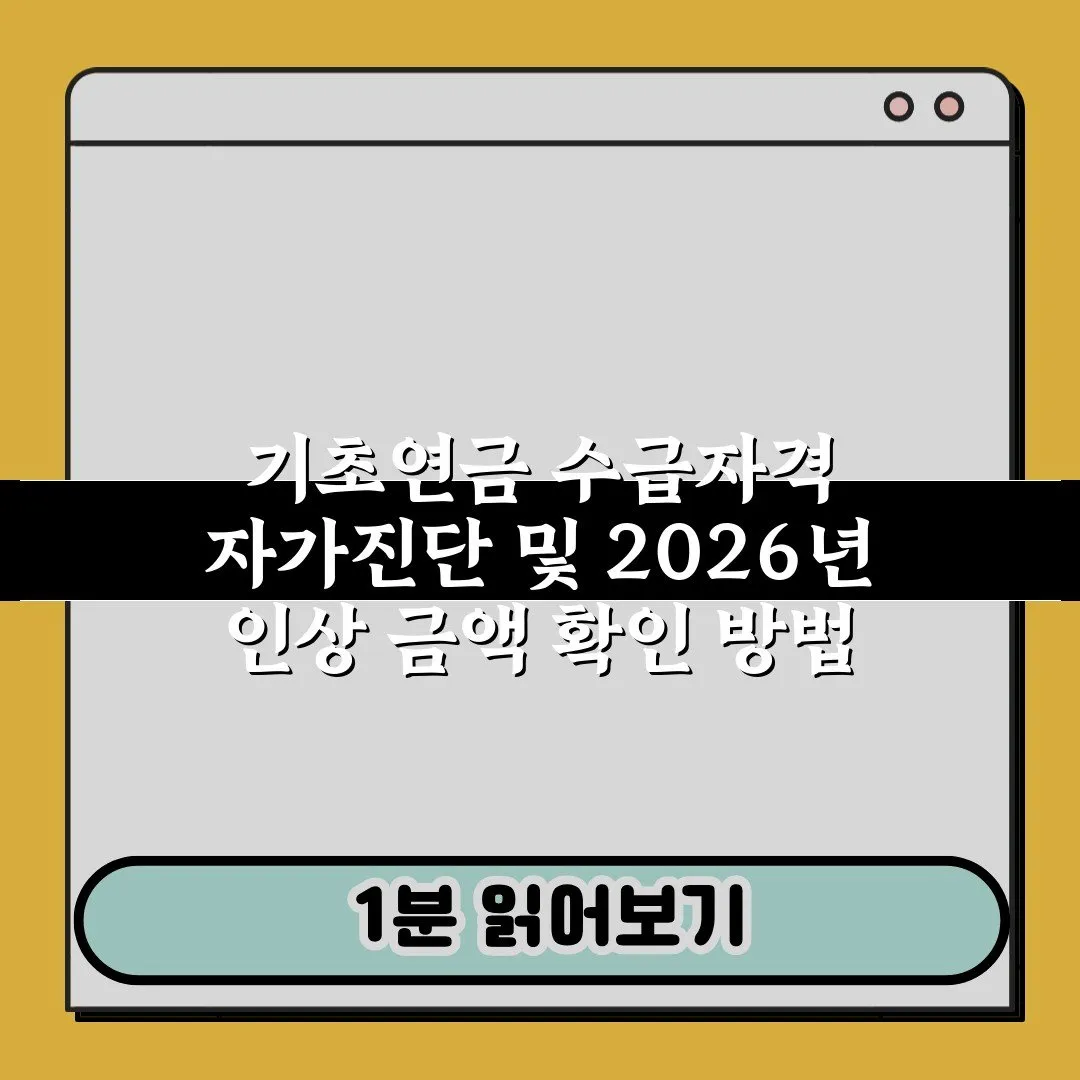 기초연금 수급자격 자가진단 및 2026년 인상 금액 확인 방법, 이제 어렵지 않아요. 본인의 자격 여부를 미리 확인하고, 내년에 달라질 연금액 변화도 꼭 살펴보세요. 안정된 노후를 위한 첫걸음이니, 지금 바로 관련 정보를 탐색해 보는 건 어떨까요?