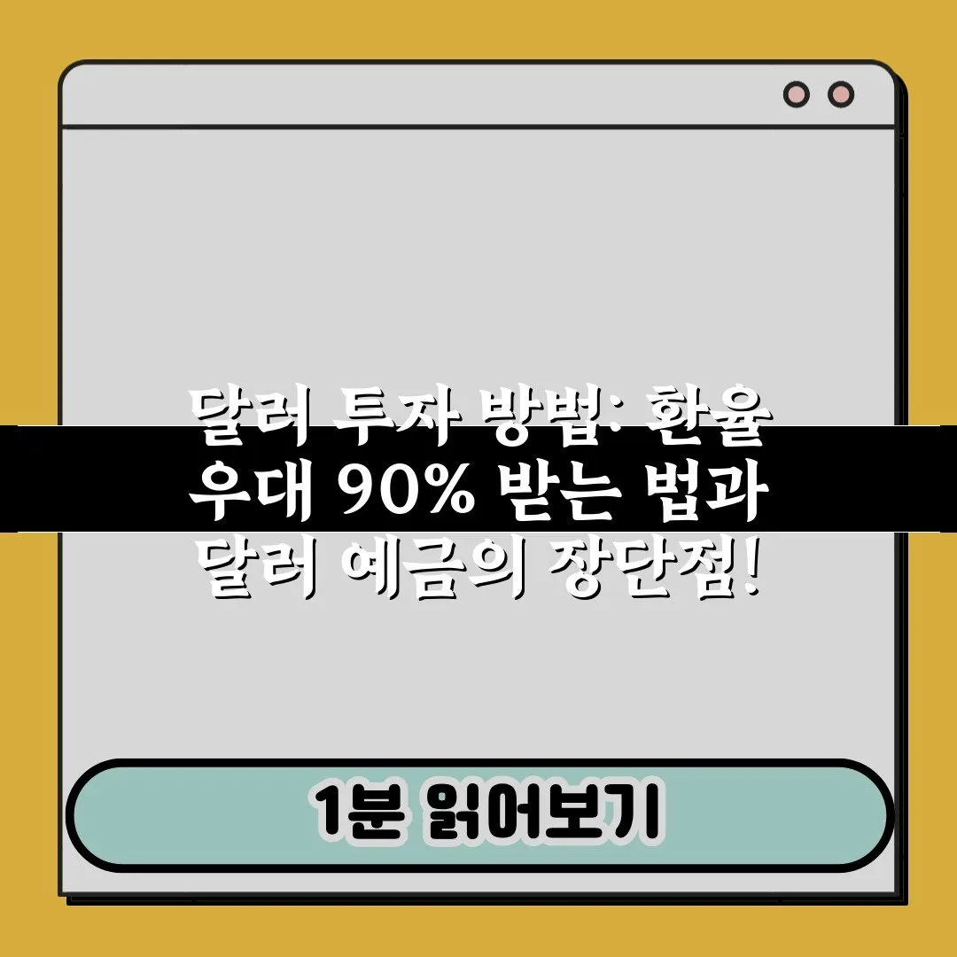 달러 투자 방법: 환율 우대 90% 받는 법과 달러 예금의 장단점을 잘 이해하는 것이 성공적인 투자의 핵심이에요. 환율 변동성을 활용하고 자산을 안전하게 지키는 기회를 잡을 수 있죠. 자신의 상황에 맞춰 현명한 달러 투자를 지금 바로 시작해 봐요!