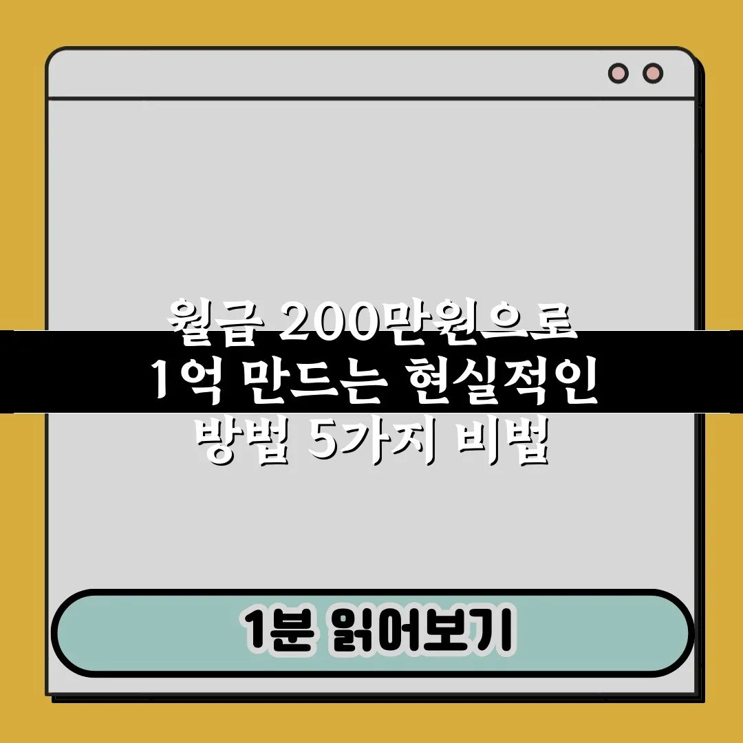 월급 200만원으로 1억 만드는 현실적인 방법 5가지 비법